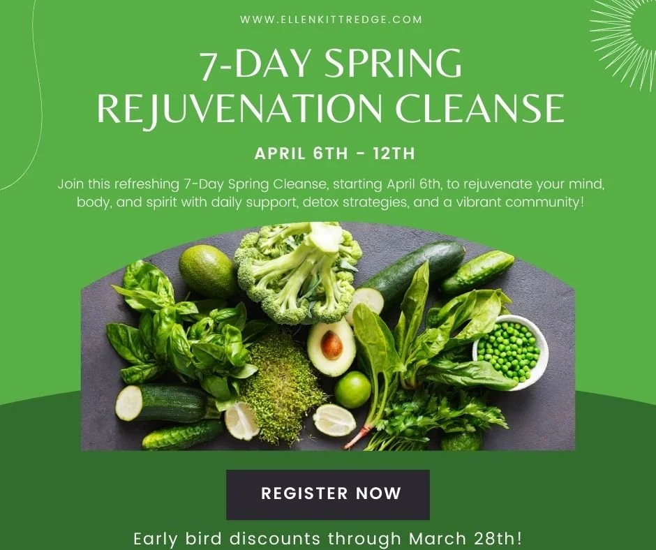 If you'd like to step into a supportive container to cleanse together, please join me for the upcoming Spring Cleanse! It's 7 Days of guided support, amazing guest teachers, delicious spring-themed recipes, and so much more! Ellen is masterful and has been offering these nutritional programs for 17 years now, so it's a tried and true reset.
